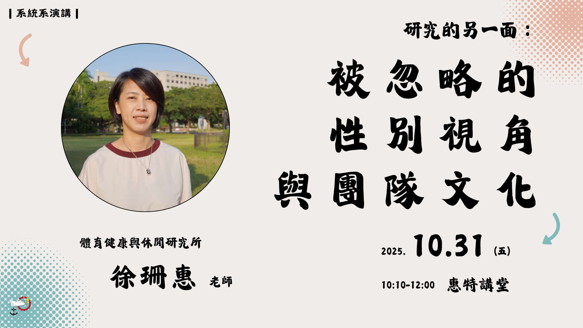 【系統系特別演講】114.10.31 徐珊惠老師 - 研究的另一面:被忽略的性別視角與團隊文化